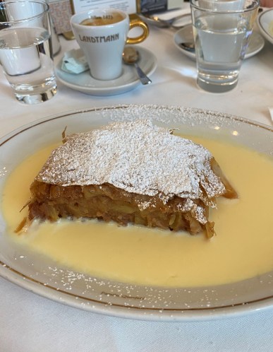 Refreshing your memory on our stance on Swiss dining (at least in Lausanne), we aren’t the biggest fans. It’s a different story here! Travel anywhere and there will be a traditional dish. Here the traditions are schnitzel, sausages, erdapfelsalat, apfelstrudel, and krapfen. Schnitzel is a deep fried flattened piece of veal. It’s delicious with cranberry sauce and lemon. You can find a great one just about anywhere, can’t go wrong! Don’t get it twisted, the Vienna sausages I’m talking about are NOT like the ones you find in the can. There are wurstel stands everywhere serving a quick take away sausage.. perfect for on the go snacking or post bar fuel. Erdapfelsalat is Austrian potato salad. Sometimes its cold, sometimes its hot, but its always tangy and perfect with that schnitzel! I’m positive there’s an ongoing battle over who has the best apfelstrudel. They can be very different but all entail baked apples, cinnamon, dough, and a healthy serving of powdered sugar. Some are served with ice cream and others with a vanilla sauce.. we don’t discriminate. Another popular treat that I see in windows of bakeries everywhere is the krapfen. I’m sure this also has a battle of the best. It’s essentially a doughnut with the potential for filling. They are tasty as it but you can have it filled with vanilla custard or go the uber traditional route with apricot jam. The krapfen like the strudel is also generously topped with powdered sugar. Maybe all truly Viennese foods should be topped with sugar..? Powdered schnitzel? Will get back to you on that. Between all the tasty traditional foods and the great restaurants in general, it’s a good thing we found a gym we love!